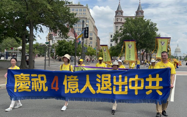 2022年7月21日,美东逾两千法轮功学员在华盛顿DC游行反对中共迫害法轮功,声援4亿人退出中共党团队(刘智/全球.退:!服务中心)