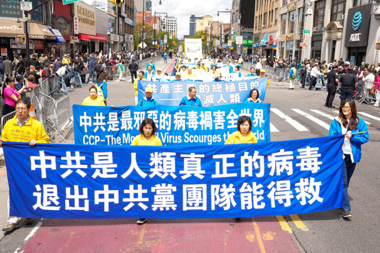 2023年4月23日(周日)纽约部分法轮功学员在法拉盛举行纪念425上访24周年游行。(戴兵/全球.退:!服务中心)