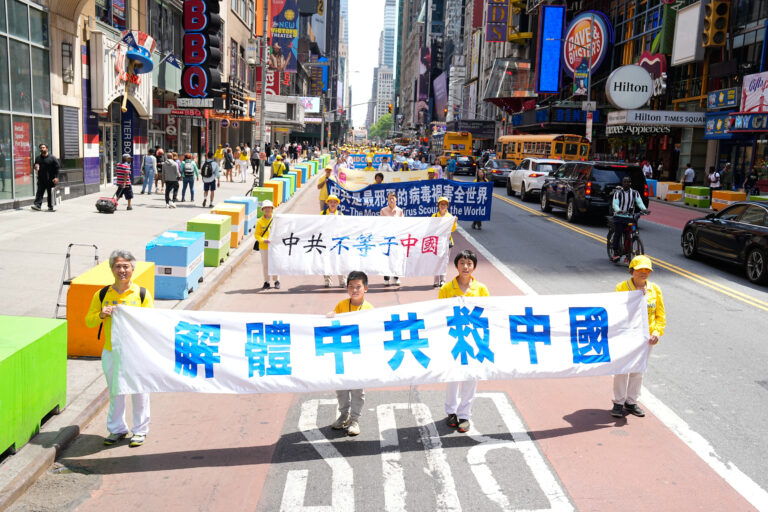 2023年5月12日,大纽约地区部分法轮功学员汇集在纽约曼哈顿举办盛大游行,庆祝法轮大法洪传世界31周年暨第24届世界法轮大法日,同时也庆贺逾四亿勇士退出中共邪*-组织。(戴兵/全球.退:!服务中心)