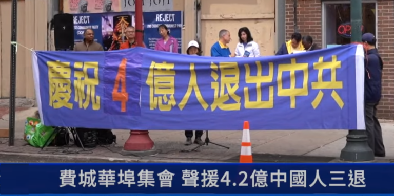 当天的集会受到了宾州众议院褒奖,以及宾州参议员和民众的支持,更有35名华人现场选择了“三:退.”。