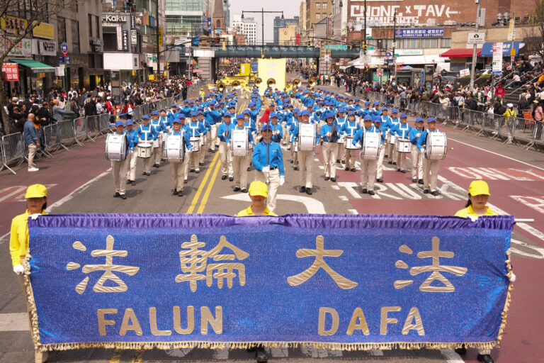 2025年4月19日(周六),为纪念万名法轮功学员1999年在北京和平上访26周年,上千名大纽约地区中西族裔法轮功学员,在纽约华人社区法拉盛举行游行。(戴兵/全球.退:!服务中心)