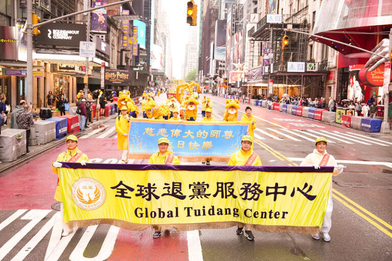 5月9日,纽约法轮功学员举行盛大游行,庆祝“513世界法轮大法日”及法轮大法师父李洪志先生华诞。许多帮助中国人退出中共党团队的义工也参加了游行,场面宏大壮观。