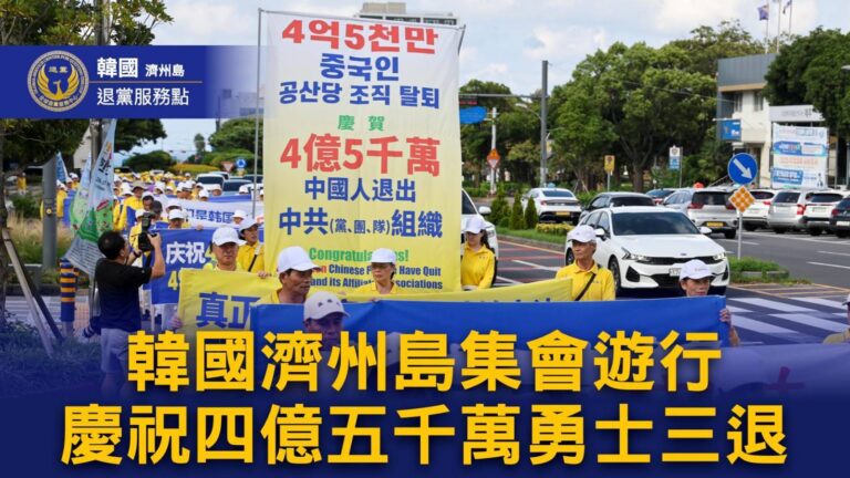 【韩国济州岛退!!服务点】法轮功学员济州岛游行 庆祝4.5亿中国勇士三:退.