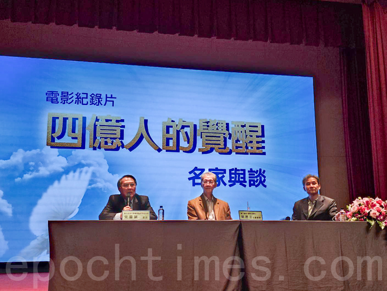 (大.纪.元;记者李晴玳、方金媛台湾高雄报导)退!党!大潮调查纪录片《四亿人的觉醒》, 24日在高雄市社教馆放映,包括市议员、国小校长及社区民众相偕出席,挤爆演讲厅。台湾大学政治学名誉教授明居正、财管公司首席经济学家吴嘉隆等应邀与谈,观众表示收获良多。 《四亿人的觉醒》,由全球.退:党!中心及著名导演李军联合制作,