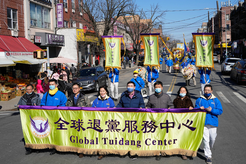 2022年2月27日,纽约地区的部分法轮功学员,在布鲁克林八大道华人社区游行,声援3亿9千万勇士退出中共。请看记者在现场的报导。 记者:“纽约部分法轮功学员来到纽约市三大华人社区之一的布鲁克林八大道游行,为当地民众带来法轮大法的真相和福音。而今天的亮点是,市警72分局局长为游行开路。” 在和煦的阳光