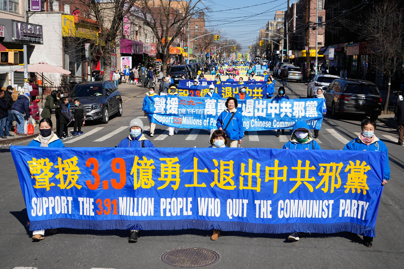 2022年2月27日,纽约地区部分法轮功学员近千人在布碌崙八大道社区游行,声援3亿9000万勇士退出中共党、团、队组织,声援“打倒中共恶魔”(EndCCP)征签人数达到200万人,希望世人赶紧了解真相。负责维持秩序的72分局警察局长称赞法轮功队伍的和平理性,“即使是抗议(中共)的活动,也可以很平和、