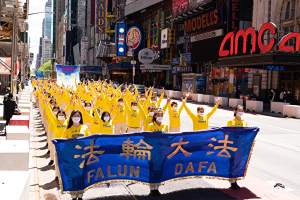 2021年5月13日,适逢第22届“世界法轮大法日”暨法轮功(也称法轮大法)洪传29周年,纽约法轮功学员在曼哈顿举行盛大游行。当天纽约部分法轮功学员近二千人从联合国公园游行至纽约中领馆。游行队伍所到之处,吸引不少路人驻足拍照,并向游行队伍招手致意。 当天的游行队伍包含三个方阵。“第一方阵:法轮大法好