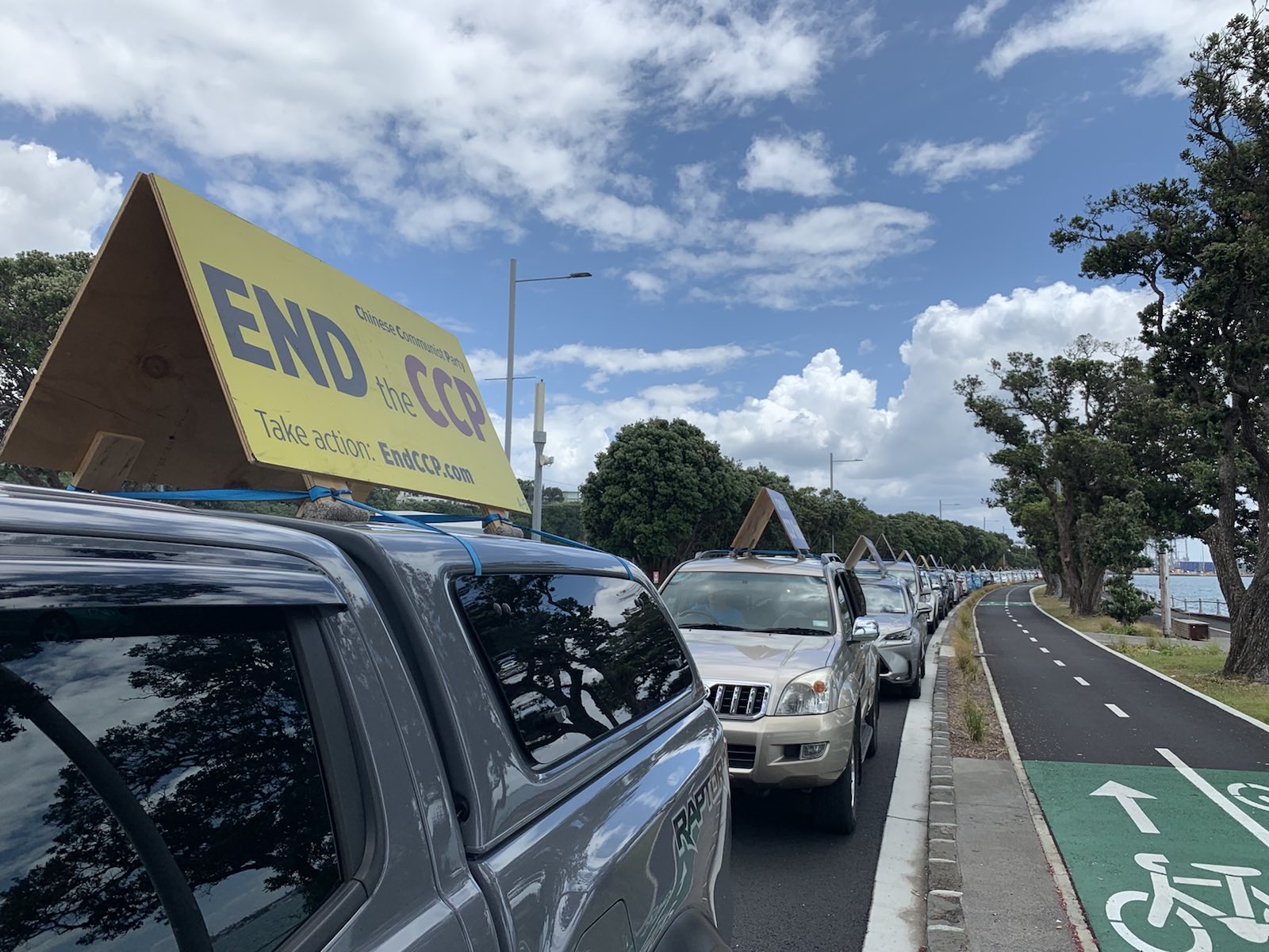从St Heliers Bay到Mission Bay是新西兰奥克兰著名的休闲度假海滩。1月8日星期六这天,海边游客不断,周边的咖啡店、饭店、酒吧熙熙攘攘。中午时分,由30辆载有“END CCP”、“打倒中共恶魔”等展板的车辆组成的真相车队徐徐驶来。长长的车队,一眼望不到头。 路边游人和坐在咖啡店外