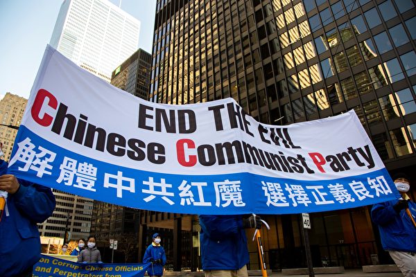 11月14日下午,加拿大多伦多市阳光明媚,法轮功学员在市中心举行“解体中共”盛大游行。沿途受到民众热烈响应,纷纷表示:中共是世界祸乱之源,灭共是必须的! 当天下午1点,游行队伍从克拉伦斯公园(Clarence Park)出发,气势雄壮的天国乐团打头阵,紧随其后的是“解体中共”方阵、“三:退.”方阵、炼功