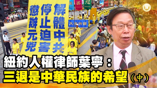 叶宁是美国纽约地区的执业律师,在看到许多大法弟子崇高道德行为之后,他非常敬佩法轮大法的洪传,敬仰李老师。 最近,叶宁在纽约接受全球.退:党!服务中心记者采访时表示,自己亲眼见证了中国共产党在历次政治运动中,对无数的人群,包括信仰团体、政治异议人士,也包括那些无意中触犯了中国共产党禁忌的人们的残酷迫害。像一