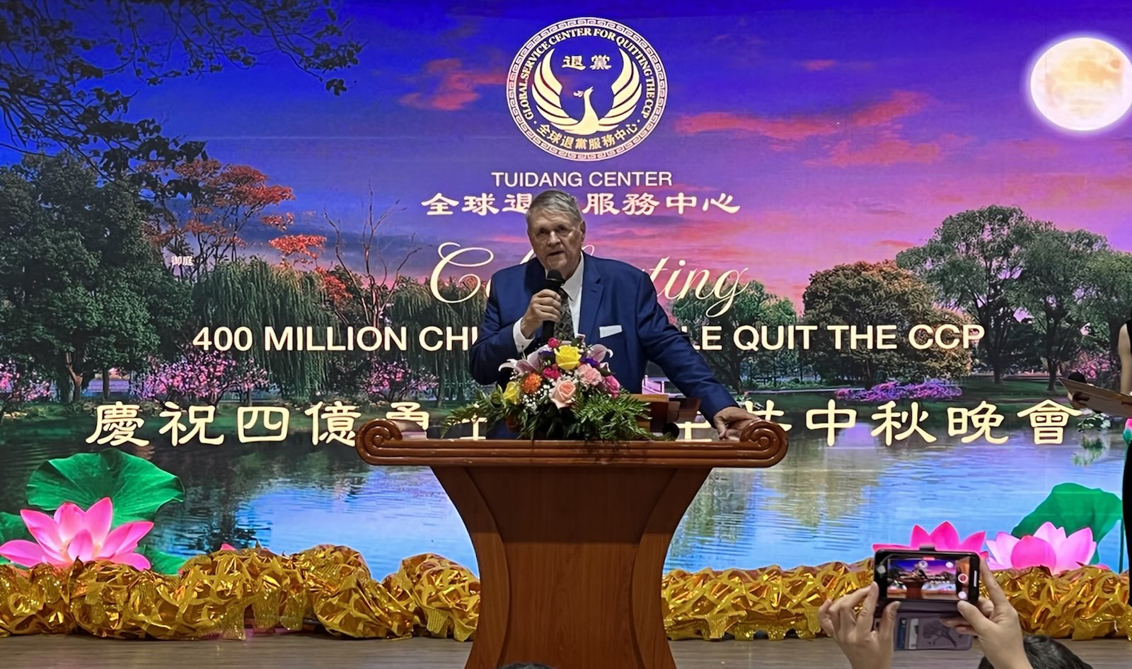 9月5日,是美国的劳工节,5天后就是华人的中秋节,为此,全球.退:党!服务中心在纽约法拉盛举办了一场隆重的中秋晚宴,邀请各界名流共同庆祝4亿中华儿女退出中国共产党所有附属组织(简称“三:退.”)。 来自纽约的跨国机构“名流国际”成员、亿万富豪、联合国代表、两党民代表、媒体界代表、影视界明星、企业界人士及全球退