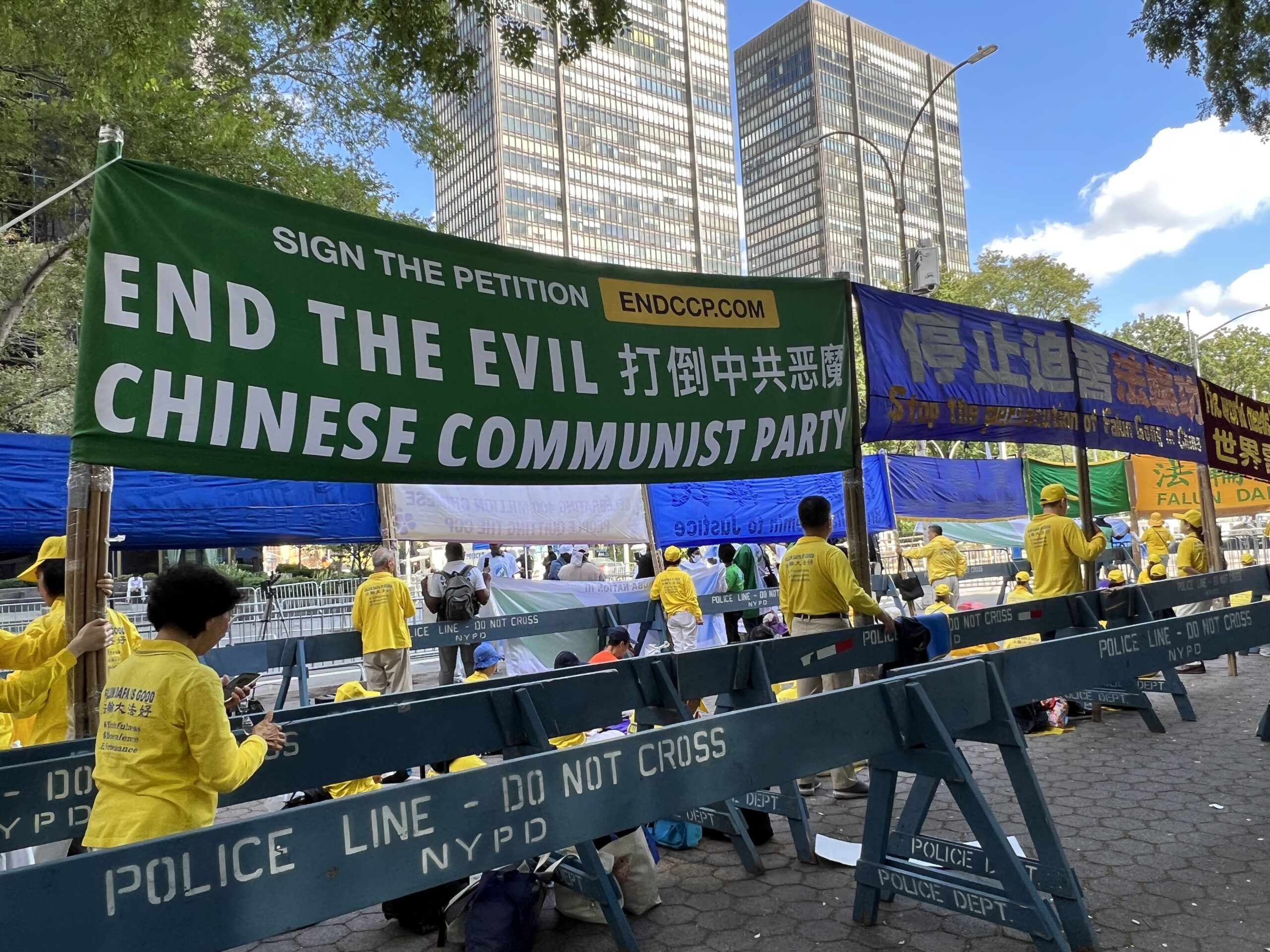 第77届联合国大会高级别会议9月20日-26日在纽约联合国总部举行,约150位国家元首和政府首脑、高级别代表聚首纽约。法轮功学员从9月19日起,在联合国总部外的广场集会,呼呼世界各国伸出援手,制止在中国持续了23年的对法轮功的迫害,并呼吁全世界联合起来解体中共、清零中共。 法轮功学员还指出,两年多来