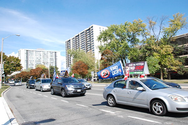 9月10日,多伦多“打倒中共恶魔”(ENDCCP)游行车队在大多伦多地区及周边地区游行,向市民传播“四亿人三:退.(退出党、团、队)”的消息,为今年加拿大“庆祝四亿人三:退.活动”划上了圆满的休止符。 自8月初以来,加拿大全国各地开展了系列庆祝活动,包括大型集会、游行及汽车游行等,其中汽车游行车队跨越全加拿