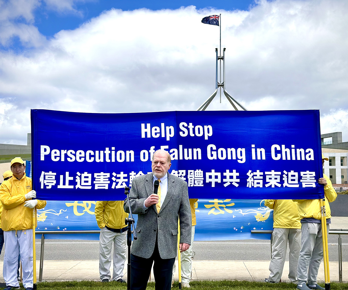 11月22日(周二),澳洲部分民众与人权组织代表聚集首都堪培拉国会山庄前举行集会,呼吁澳洲政府发声制止在中国持续了二十三年对法轮功的迫害。谴责中共活摘器官的罪恶行径。