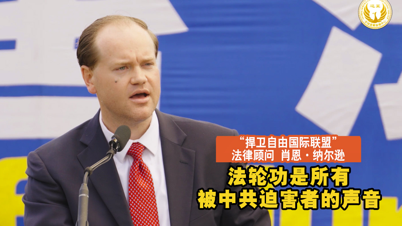 7月20日,来自美国各地的部分法轮功学员会聚在华盛顿DC国会山附近的国家广场(National Mall),举行“反中共迫害24周年”大型集会,政要代表和非营利组织、智库代表现场演讲声援。 美国“捍卫自由国际联盟”法律顾问肖恩·纳尔逊(Sean Nelson)在发言中表示,在中共目前对中国众多的宗教