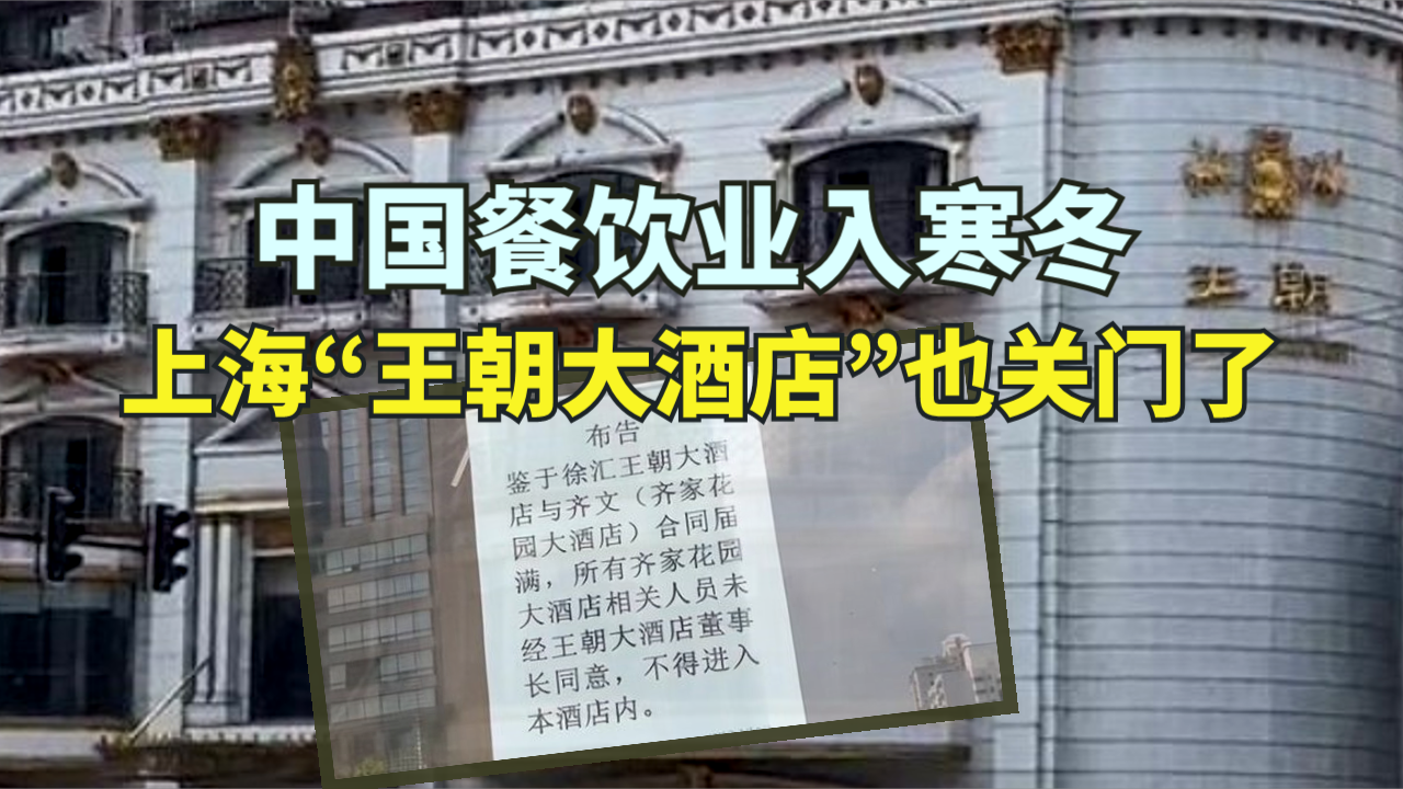 随着中共治下的经济衰退不振,民众消费降级,中国的餐饮酒店业正陷入寒冬。继去年有近三百万家餐饮门店关停,创下历史新高之后,近日,上海著名的标志性酒店“王朝大酒店”也关门了。餐饮酒店业从业人士表示,今年是“酒店行业淘汰最残酷的一年”。 上海著名的王朝大酒店悄然关闭 据上观新闻等中国大陆媒报导,“王朝大酒