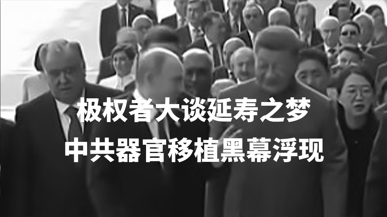 普京和习*近*平在天安门城楼上谈论通过器官移植延长寿命。麦克风意外捕捉到两位独裁者骇人听闻的对话,揭开了中共器官移植的黑幕。 9月3日,普京和习*近*平在攀登天安门城楼阅兵的路上谈起了长生不老的问题。习*近*平的翻译用俄语说道:“过去,人活过70岁是很罕见的,现在人们都说70岁还是个孩子。” 普京随即做出回应,