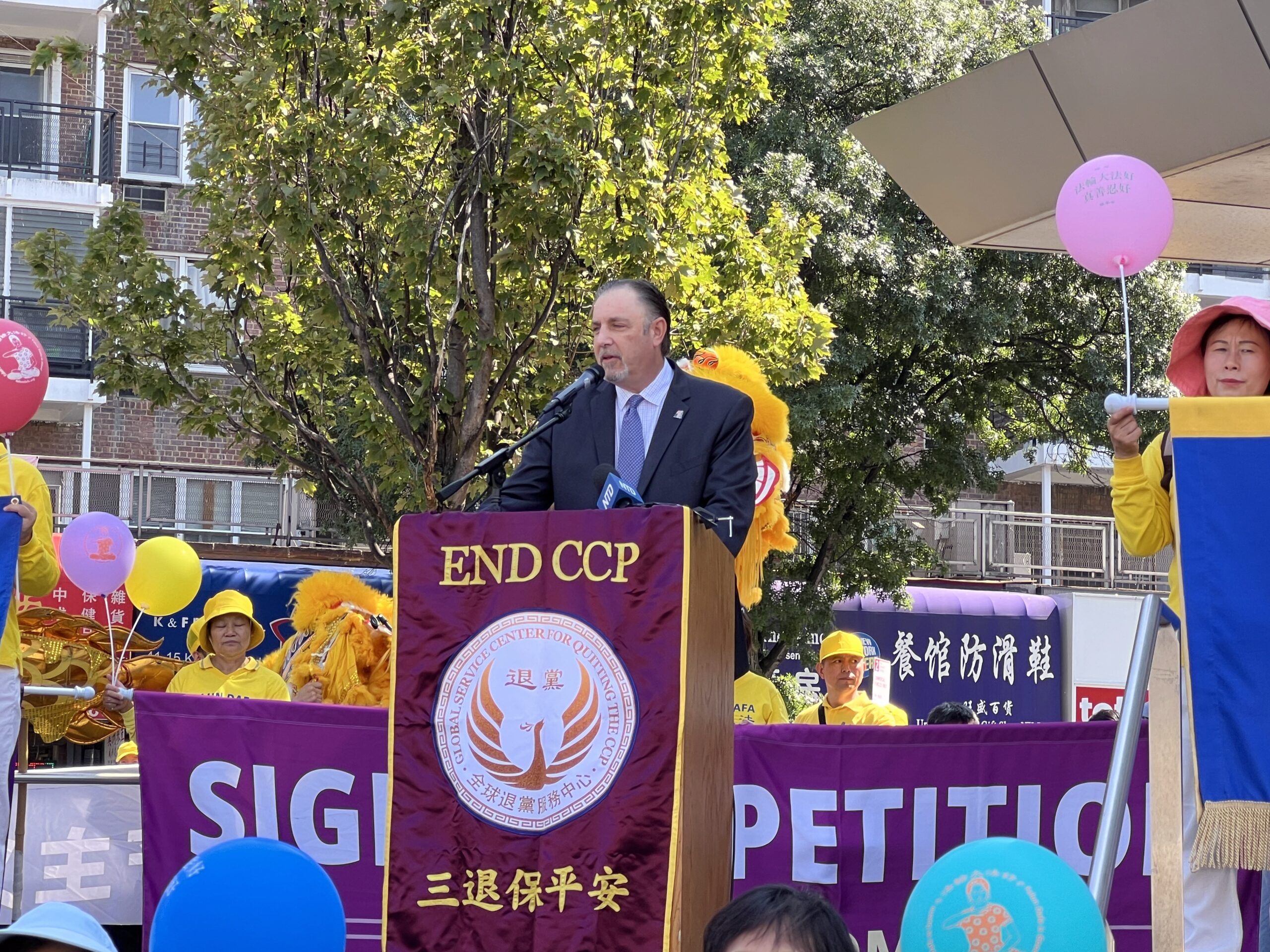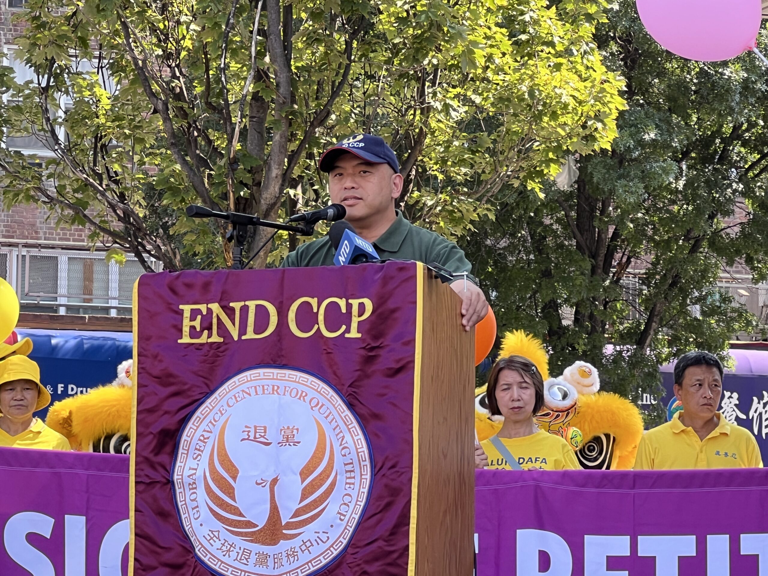 8月10日(周日)上午,全球退出中共服务中心在纽约法拉盛举行集会,庆祝全球退出中共党、团、队(简称“三:退.”)的人数突破了4.5亿人暨“打倒中共恶魔”连署近500万。纽约知名律师葉寧与会并作了演讲。葉寧演讲全文如下: 有一个最强大的力量,超过全美十一艘航母、一千八百颗核弹头的力量,它是一个个声音,一阵