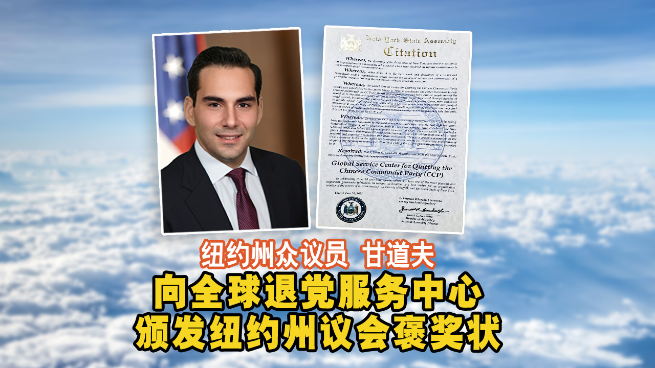 在“七一退!党!日”到来之际,美国多位民意代表、民选官员向“全球.退:党!服务中心”发来贺信和褒奖状,祝贺经过18年的退出中共运动,迄今全球有近4.15亿中国人退出中国共产党、共青团及少先队。 纽约州议会第七选区州众议员杰瑞特‧甘道夫(Jarett C. Gandolfo)6月20日向总部位于纽约的全球.退:党!服