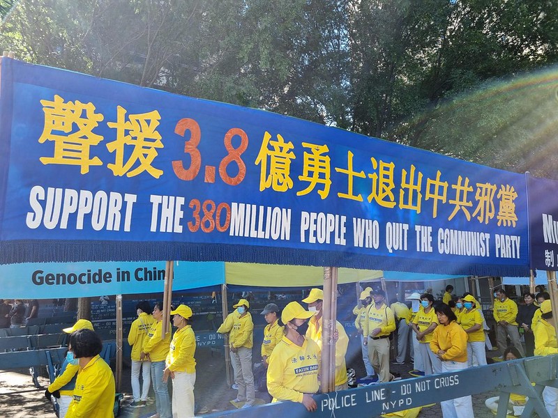 2022年2月27日,纽约地区部分法轮功学员近千人在布碌崙八大道社区游行,声援3亿9000万勇士退出中共党、团、队组织,声援“打倒中共恶魔”(EndCCP)征签人数达到200万人,希望世人赶紧了解真相。负责维持秩序的72分局警察局长称赞法轮功队伍的和平理性,“即使是抗议(中共)的活动,也可以很平和、