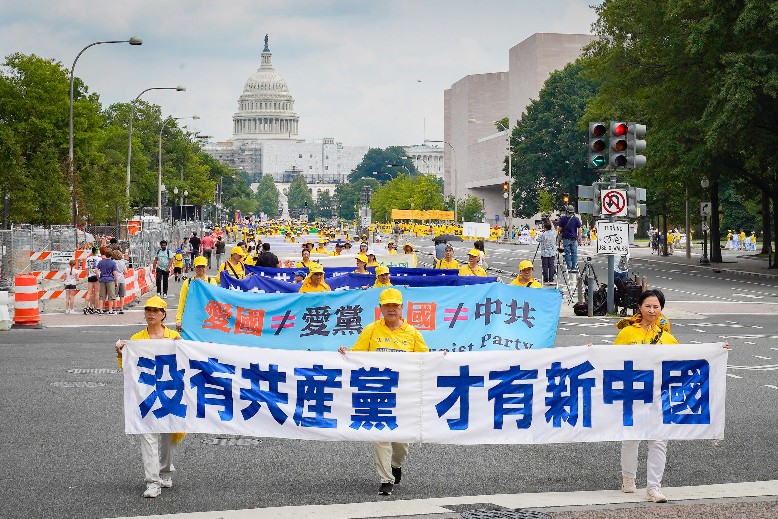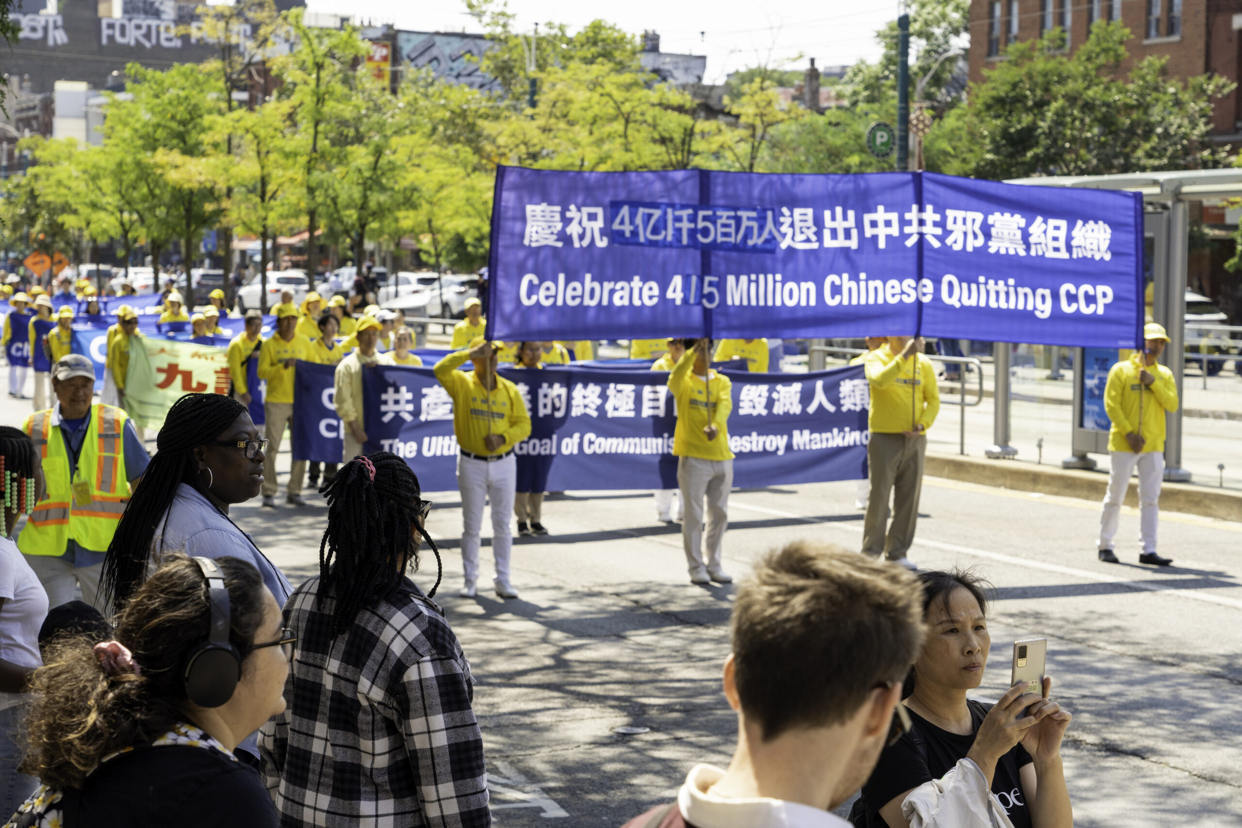2023年8月19日(周六)下午,多伦多约600位法轮功学员在市中心举行游行活动,以声援4.17亿勇士三:退.(退出中共党、共青团、少先队组织)。 2004年11月19日,大.纪.元;发表系列文章《·九·评*共产党》,引发全球三:退.大潮。截至目前,大.纪.元;网站显示三:退.人数为4亿1,760万9,858人。 游行人士打出大