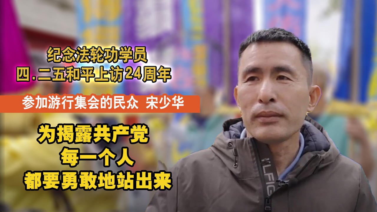 去年剛从大陆来美国的宋少华先生,2023年4月23日参加了纽约法轮功学员纪念4・25和平上访24周年暨声援4.1亿中国人三:退.的游行活动,在游行开始之前他激动地接受了记者的采访: 来到美国感受到美国的世界和中国的大陆完全是不一样的制度,感受到美国的自由,来到这里接触到法轮功这个团体,感觉到法轮功这个团