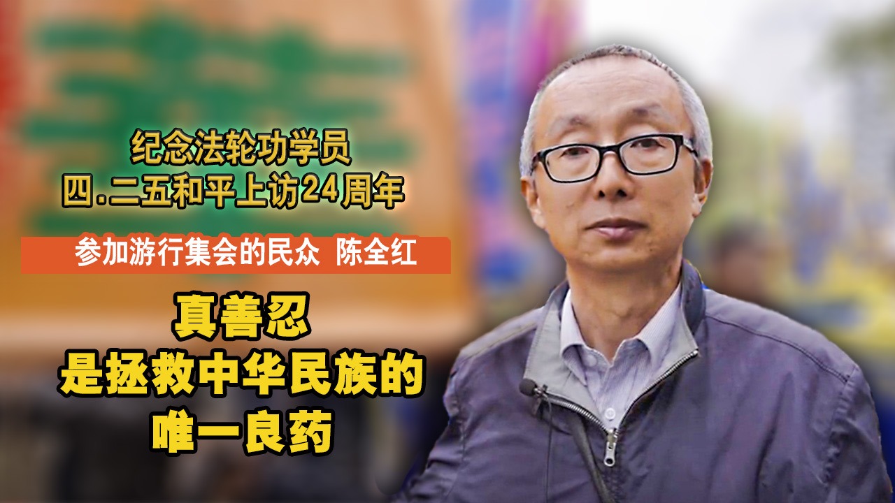刚刚走进法轮功修炼团体的陈全红先生,2023年4月23日第一次参加纽约法轮功学员纪念4・25和平上访24周年暨声援4.1亿中国人三:退.的游行和集会,他面对记者的采访有感而发: 我叫陈全红,我非常高兴能参加我们法轮功的活动,感觉非常幸运,我想告诉大家中共的邪恶,告诉大家我个人的一些思想转变,告诉大家法轮