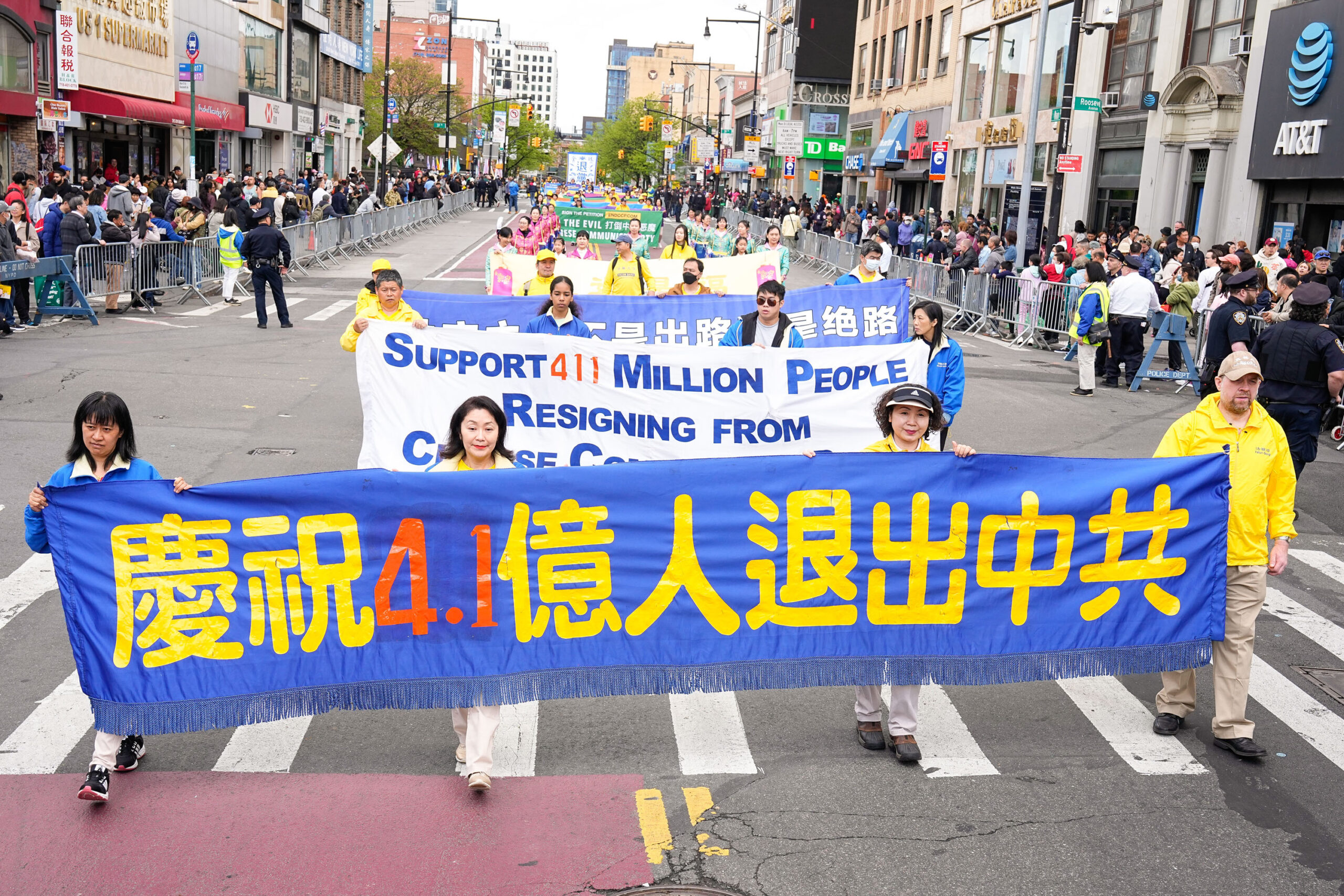 4月23日(周日),纽约部分法轮功学员、超过四千人在华人社区法拉盛举行盛大游行和集会,纪念1999年4月25日逾万名法轮功学员到北京中南海附近的中央信访局和平上访24周年。 纽约最大的华人社区法拉盛中心区周日人流如织,众多民众观看了规模浩大的游行,包括很多刚从大陆来美的华人,甚至刚从中美洲千辛万苦“