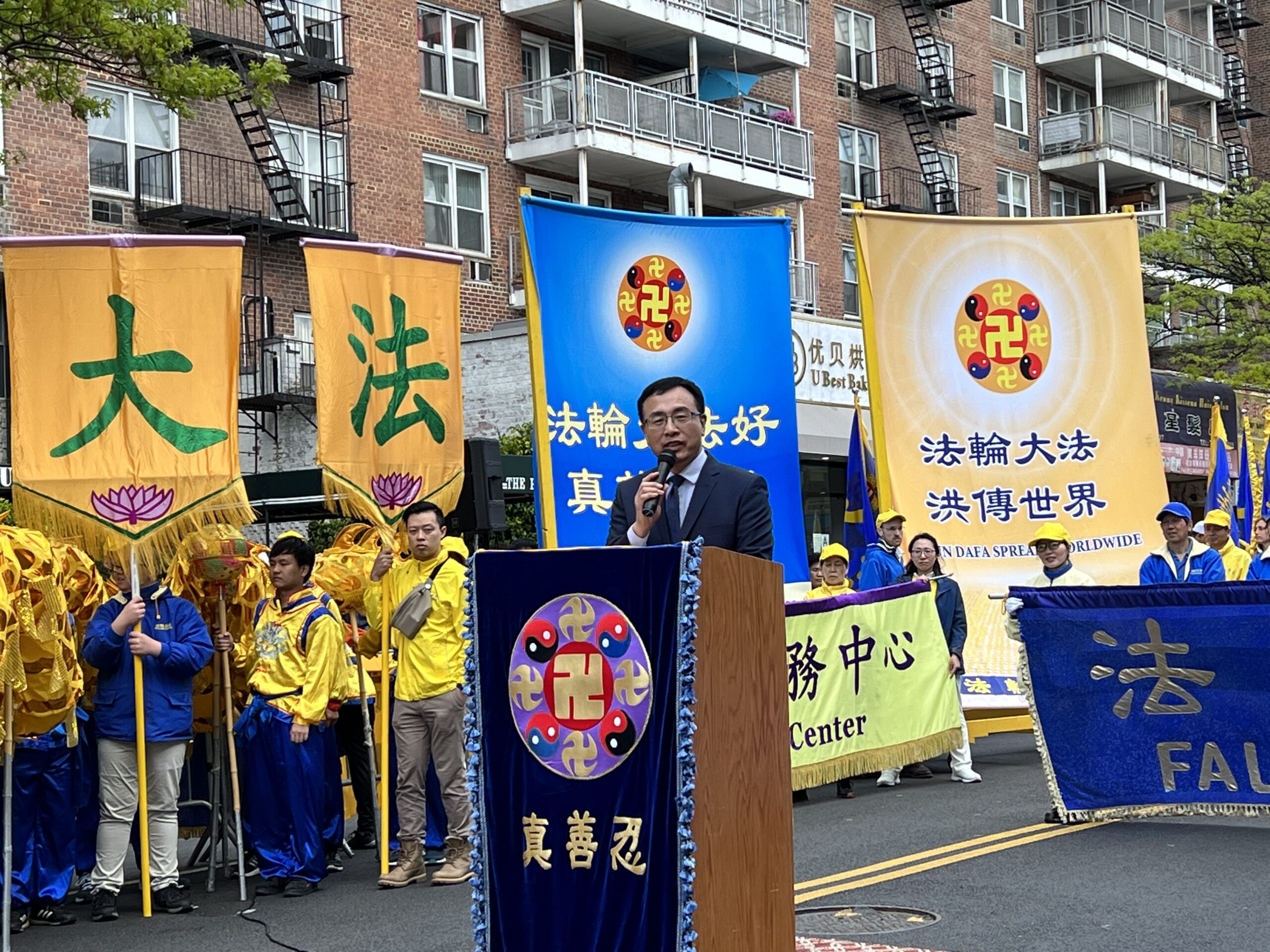 女士们,先生们,大家好! 我叫Lydia,王珊珊,是华裔美国公民,今天我们在这里游行集会纪念法轮大法学员和平上访24周年,在此我们展现了法轮大法洪传世界的美好,展现了在没有共产党的统治下的自由社会的信仰和言论的自由,与此同时我要在此为我的母亲刘爱华发声,为正在遭受中共残酷迫害的法轮功学员发声,向全世