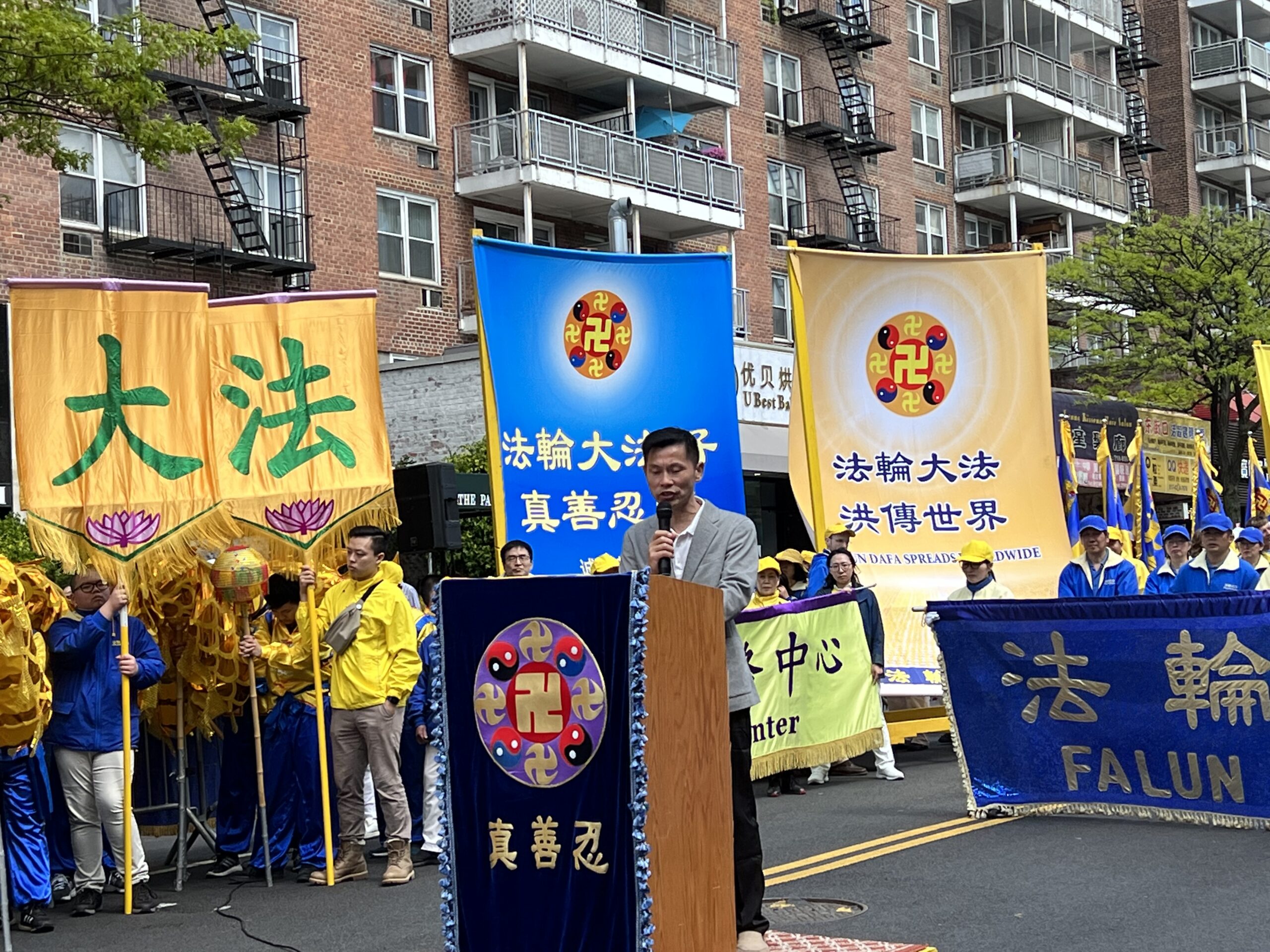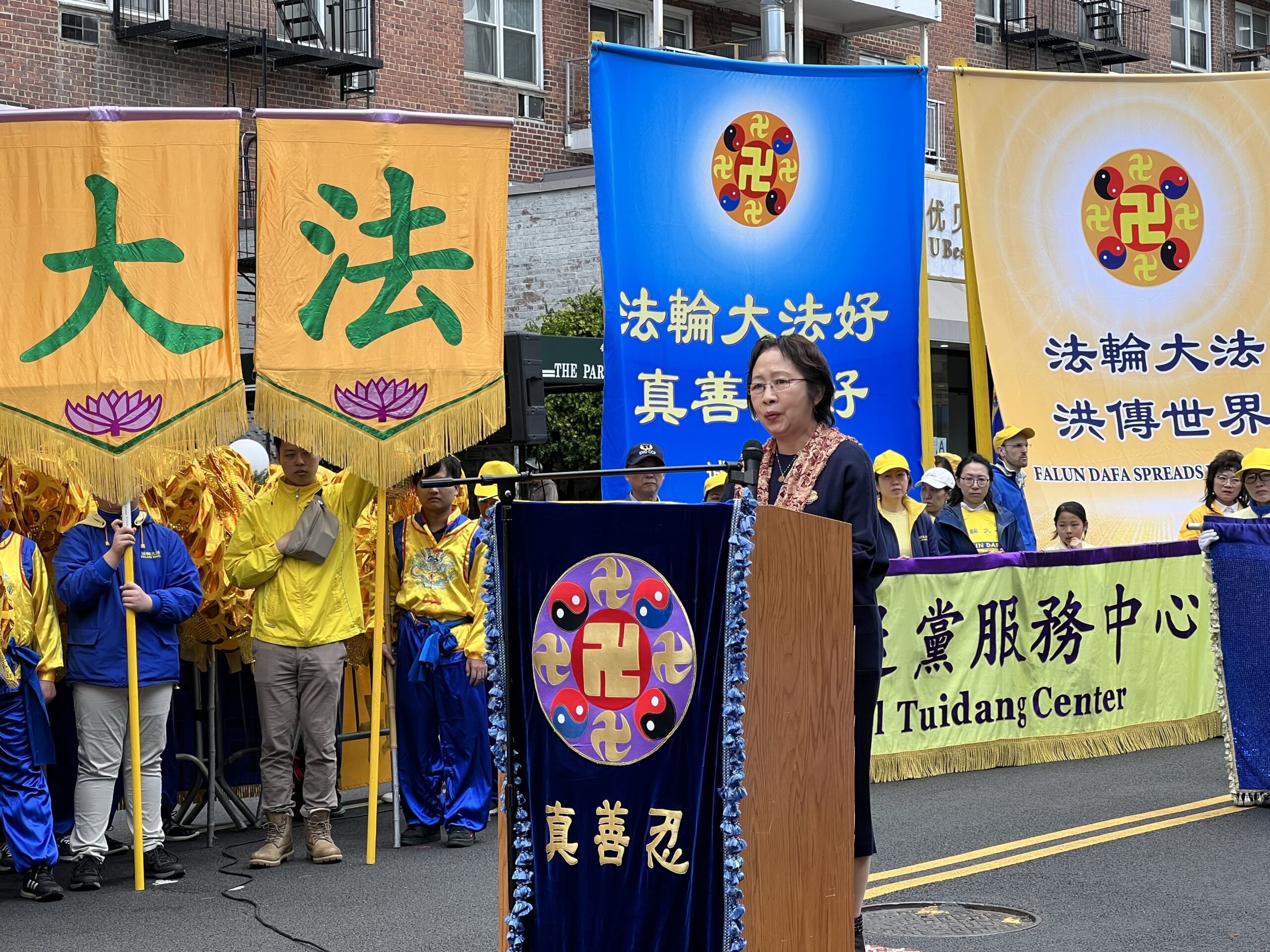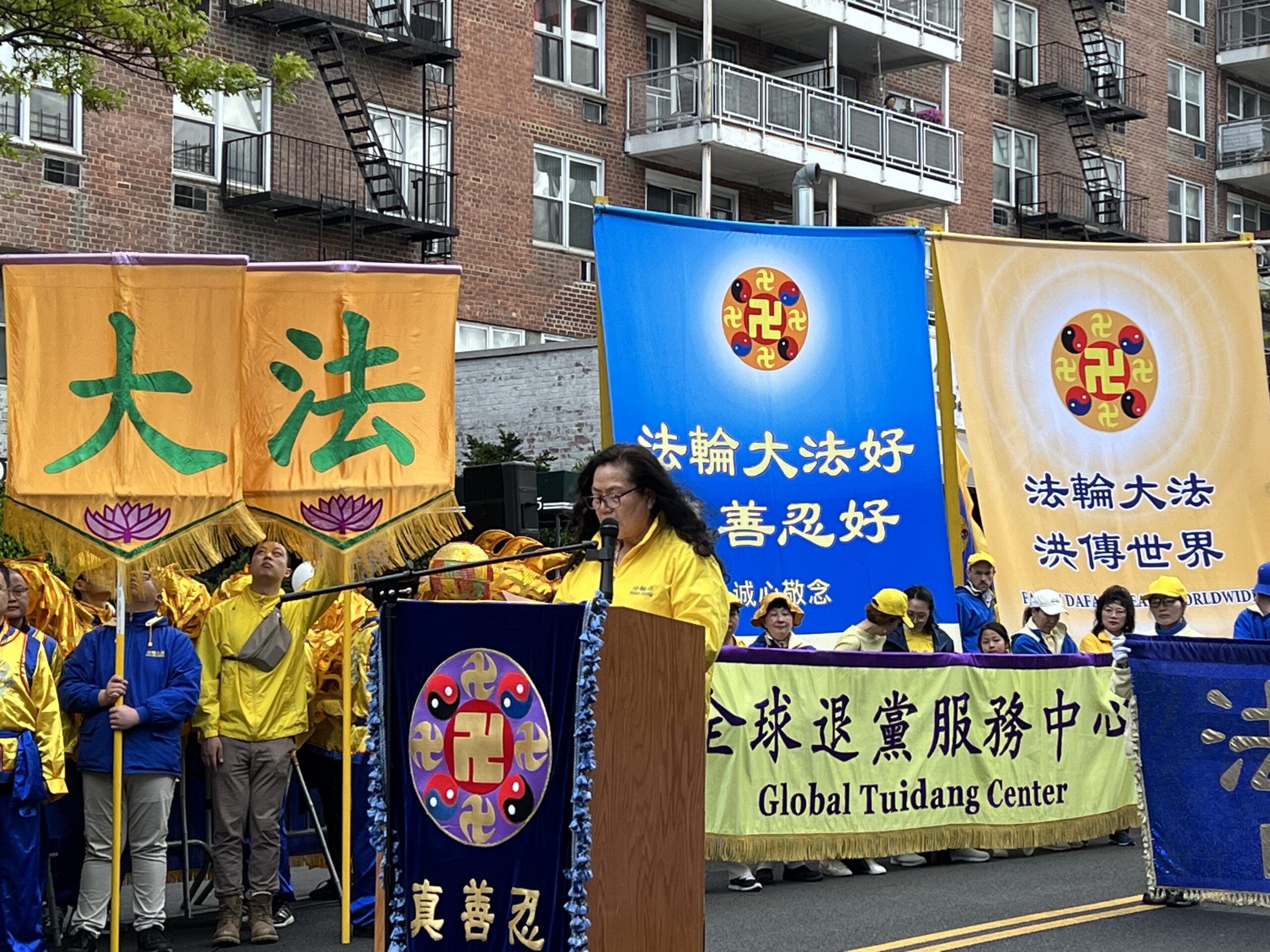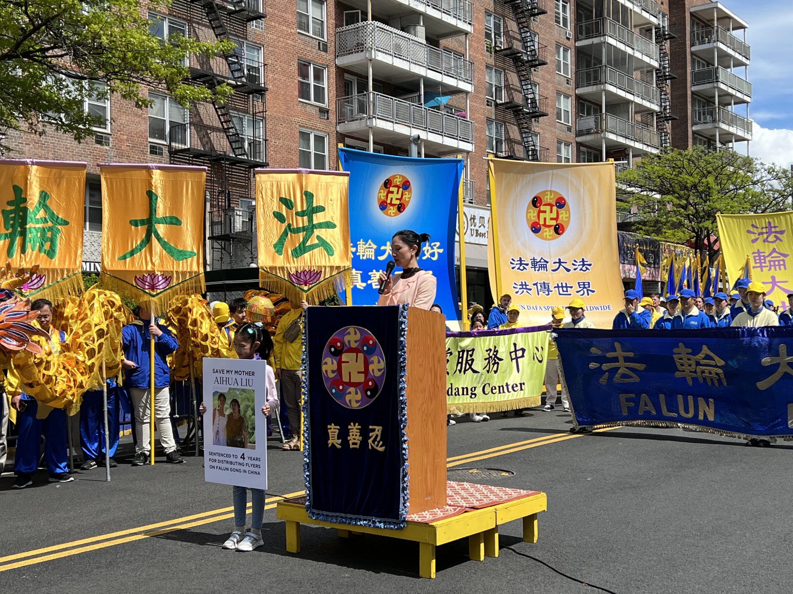 女士们,先生们,大家好! 我叫Lydia,王珊珊,是华裔美国公民,今天我们在这里游行集会纪念法轮大法学员和平上访24周年,在此我们展现了法轮大法洪传世界的美好,展现了在没有共产党的统治下的自由社会的信仰和言论的自由,与此同时我要在此为我的母亲刘爱华发声,为正在遭受中共残酷迫害的法轮功学员发声,向全世
