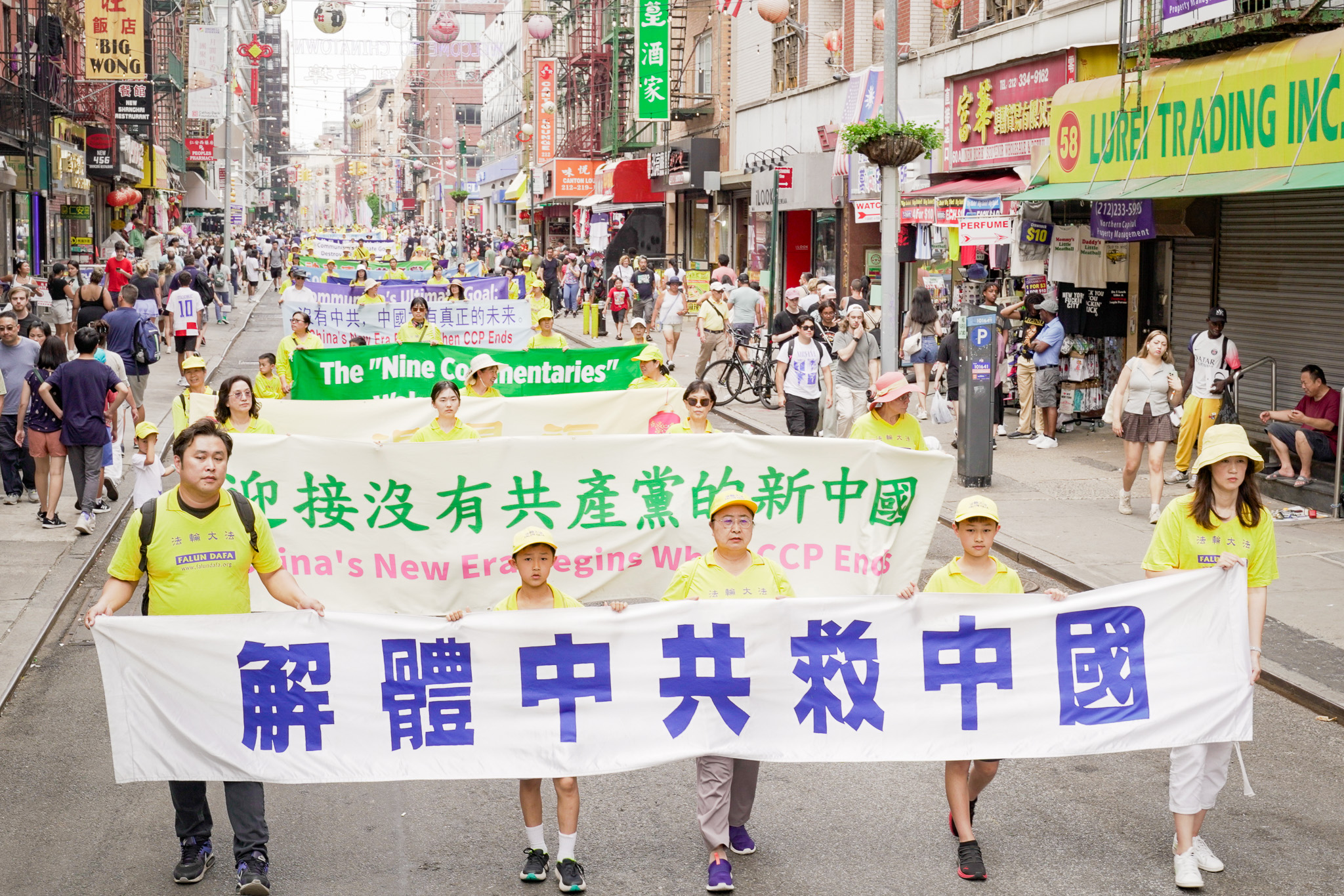 9月7日(周日),纽约逾千法轮功学员及支持者齐聚布鲁克林八大道,举行盛大游行,声援全球已有4.5亿人退出中共党、团、队的“三:退.”行动,End CCP(打倒中共恶魔)全球连署签名人数近500万。并感谢美国国会众议院日前通过《法轮功保护法案》,呼吁制止中共跨国镇压法轮功, 这场游行分为三大方阵、26支队
