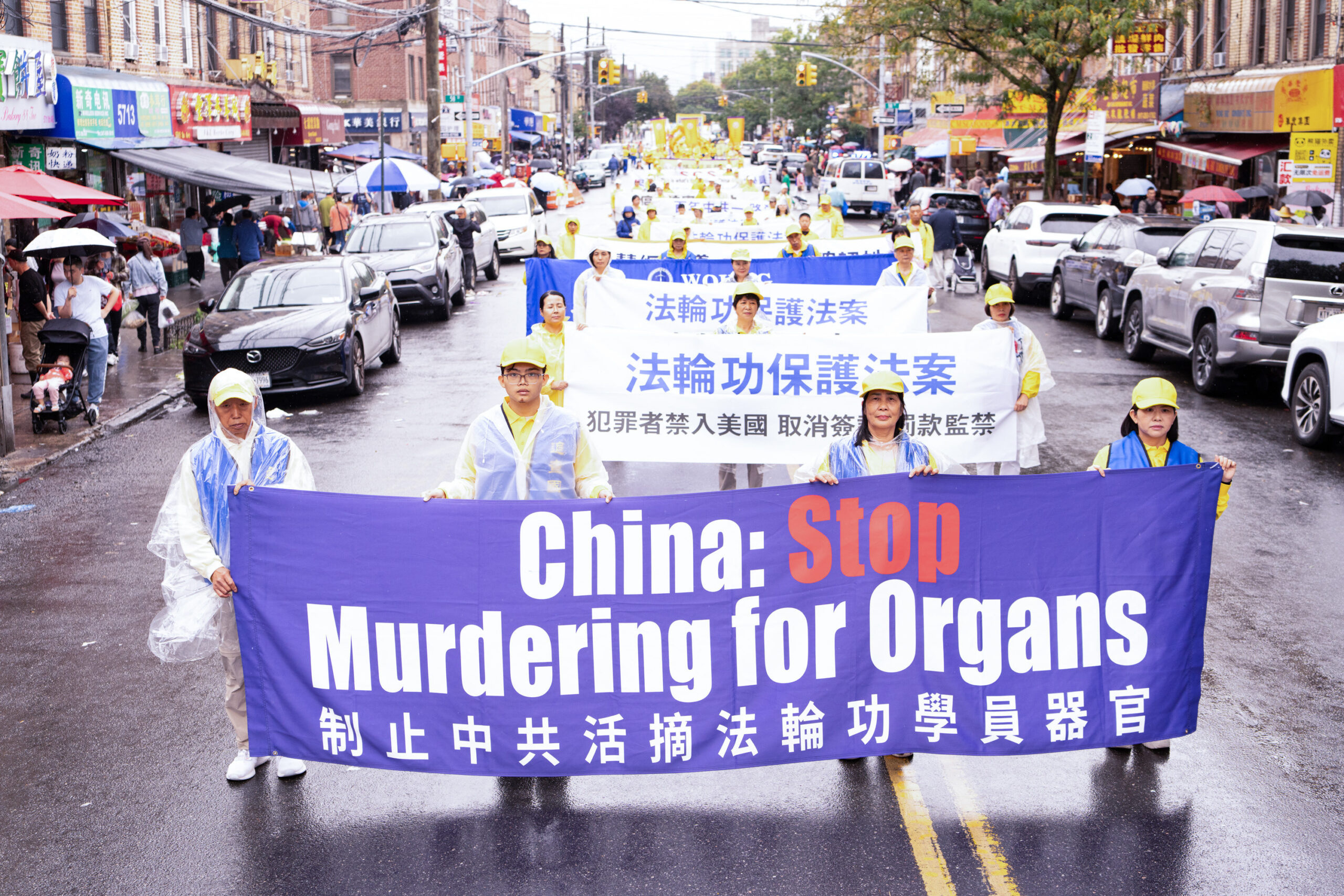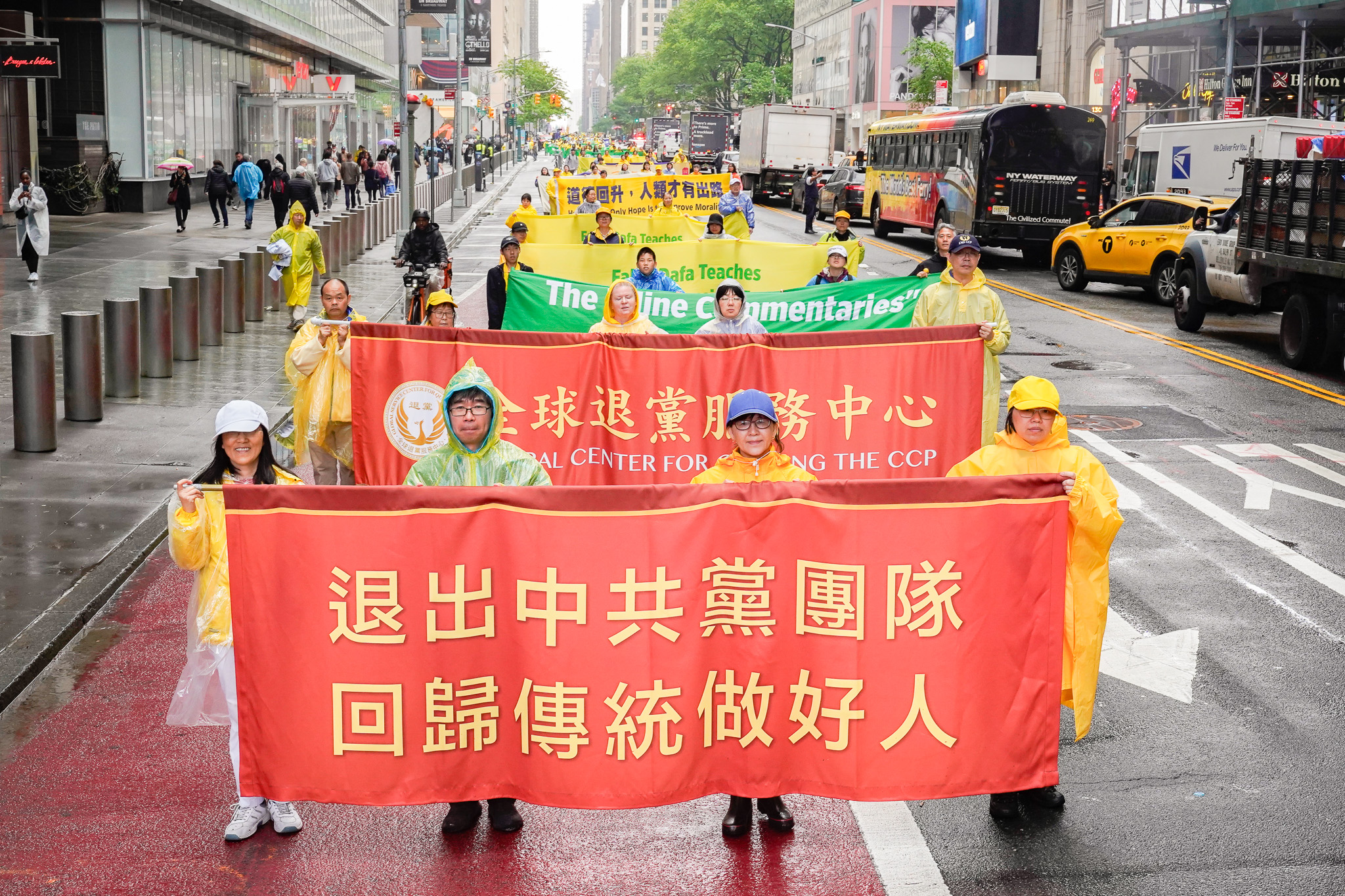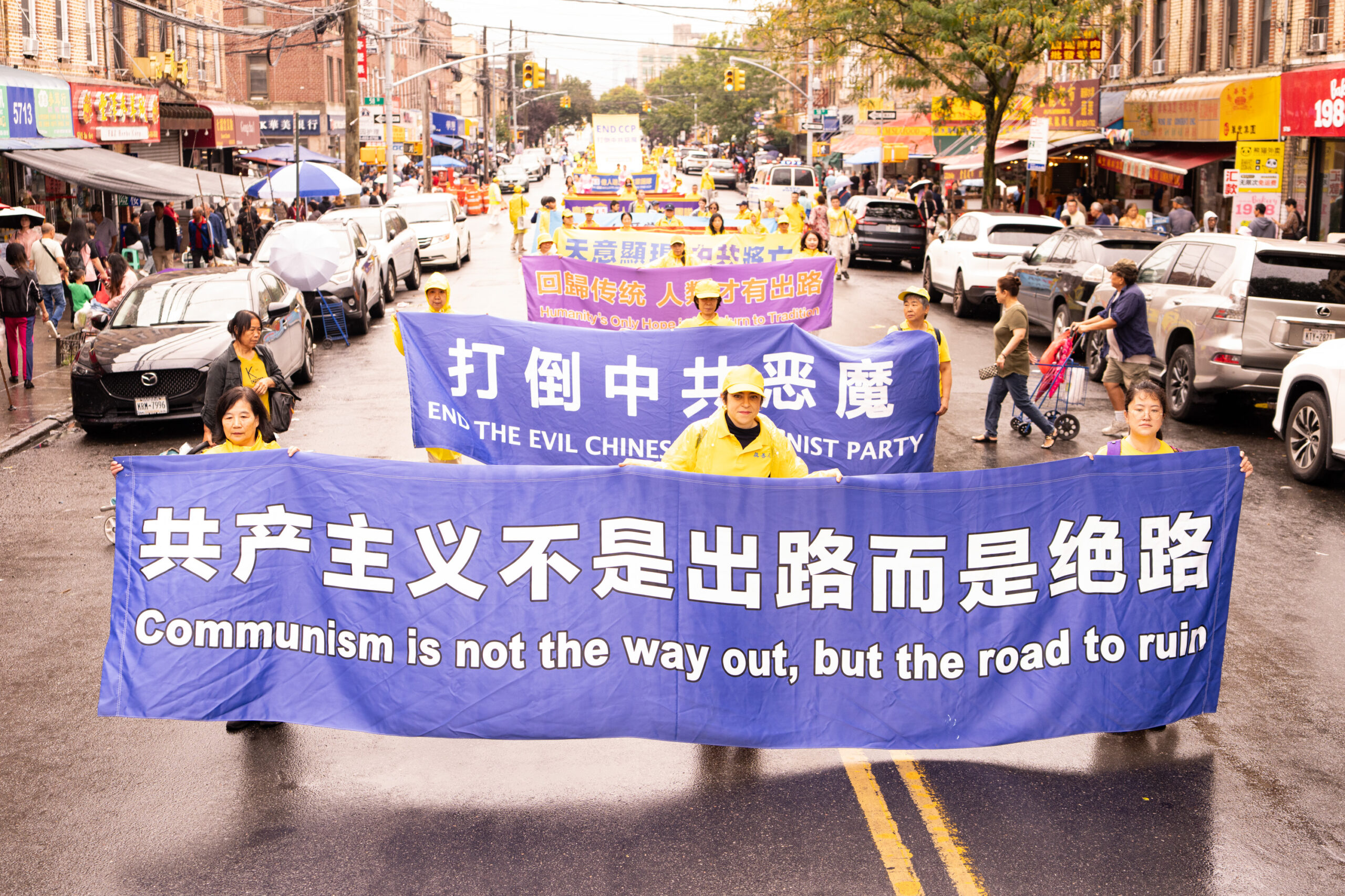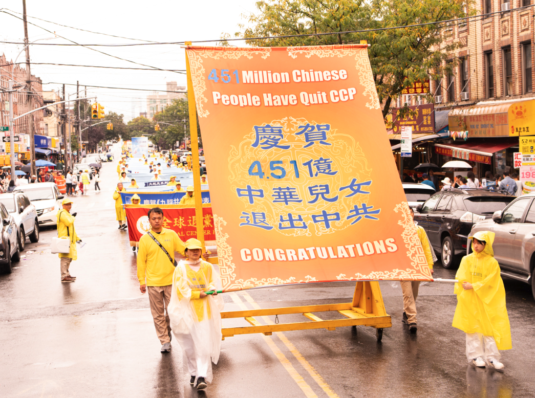 2025年9月7日(周日)纽约逾千法轮功学员冒雨在布鲁克林游行,声援4.5亿中国人退出中共党团队(三:退.),以及EndCCP(打倒中共恶魔)联署近500万。 布鲁克林位于纽约曼哈顿东南部,东连王后区。在纽约市五大区中,为人口最多的一区,有250万居民,八大道是纽约三大华人聚集地之一。游行期间,沿途不少